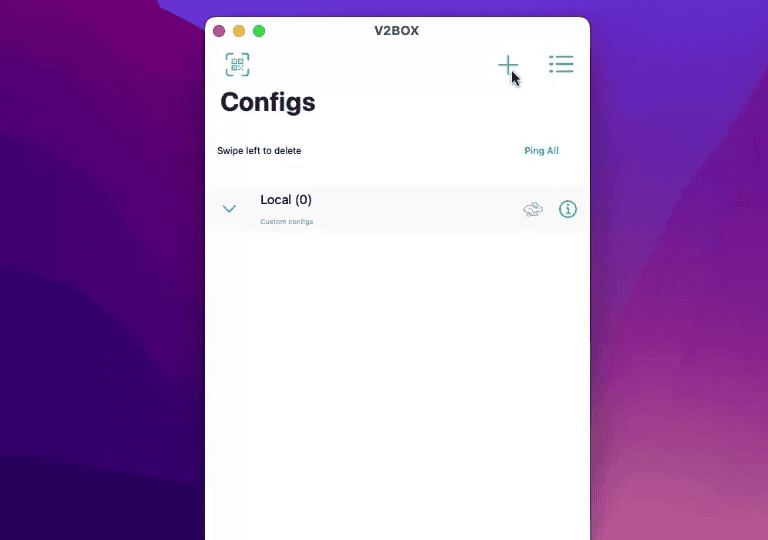 روی دکمه "+" کلیک کنید تا منوی افزودن کانفیگ باز شود.